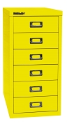 Der Bisley MultiDrawer™ - Die elegante Lösung für Platzsparer. Der Schubladenschrank der 29er Serie im Format DIN A4 bietet in 6 Schubladen mit einer Höhe von 87 mm Platz für Ihre Unterlagen. Chrombeschichtete Etikettenhalter und Griffe auf allen Schubladen prägen das beliebte Design der MultiDrawer™. Die Garantie beträgt 5 Jahre. Maße: H 590 x B 279 x T 380 mm. Farbe zinkgelb.